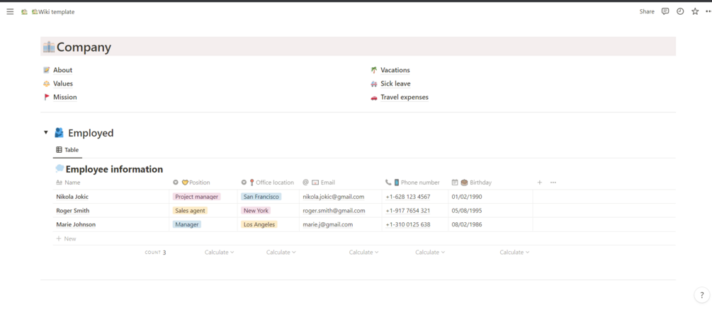 Basic data of the company and employees, To Do list, projects -> all in one place